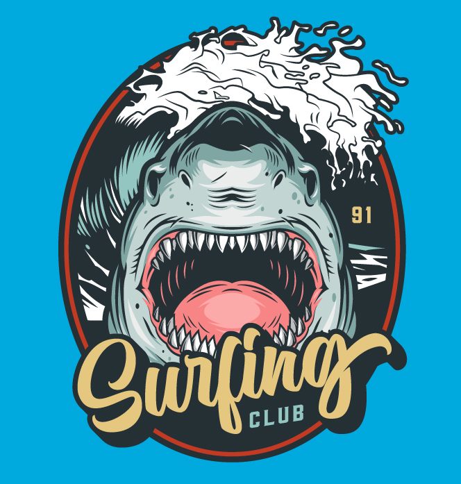 Shark surfing in aqua